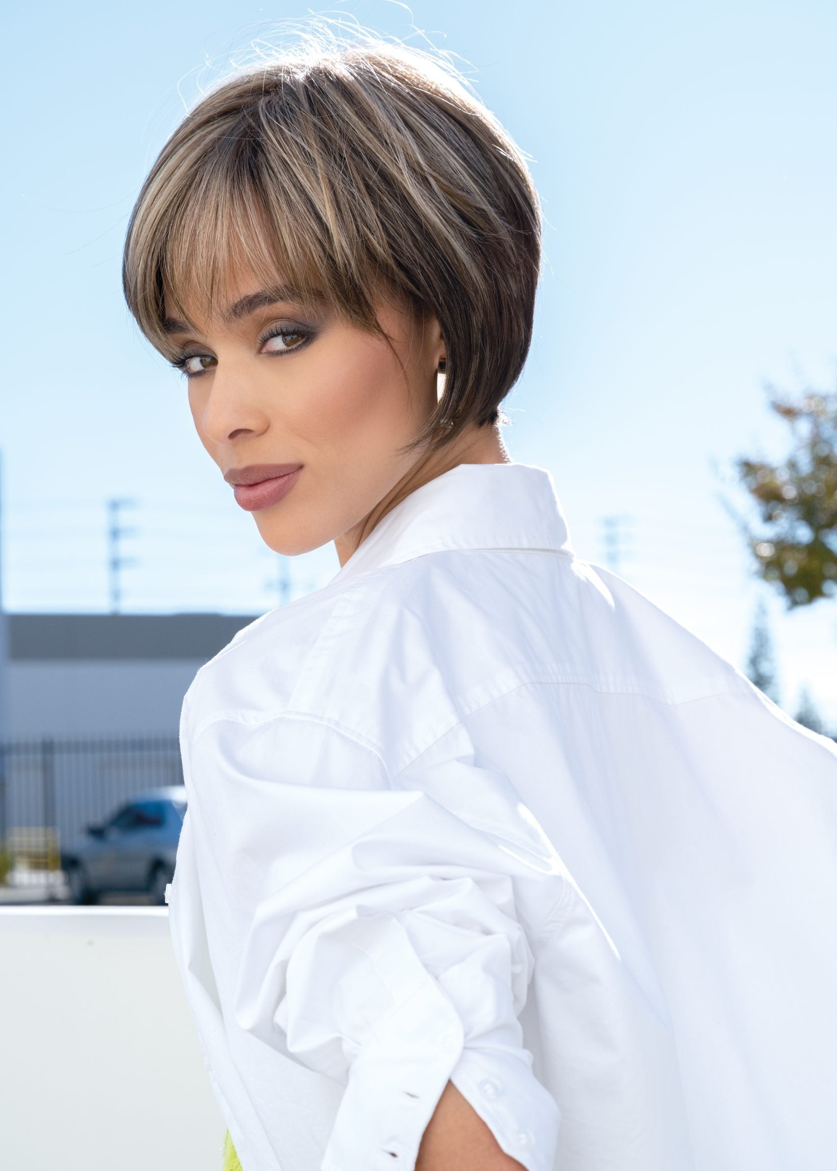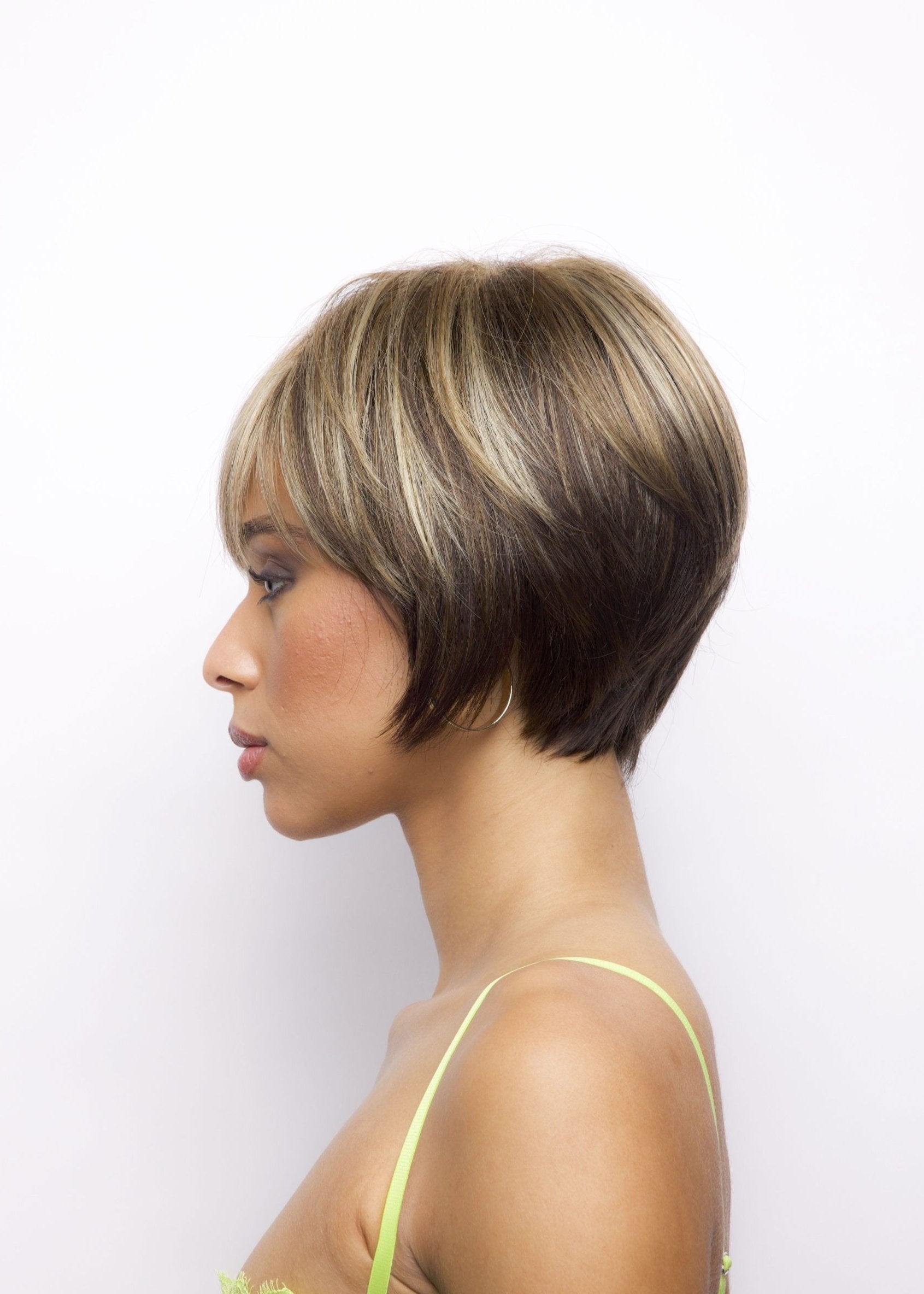 Audrey from the Rene of Paris Hi-Fashion Collection is a short-length synthetic wig. This straight ready-to-wear wig is a smooth layered bob with angled sides to give you that defined look. Audrey is machine made with adjustable tabs in the back nape area to allow a more comfortable fit. The result is a comfortable fit with a natural look that is both fashionable and easy to wear.