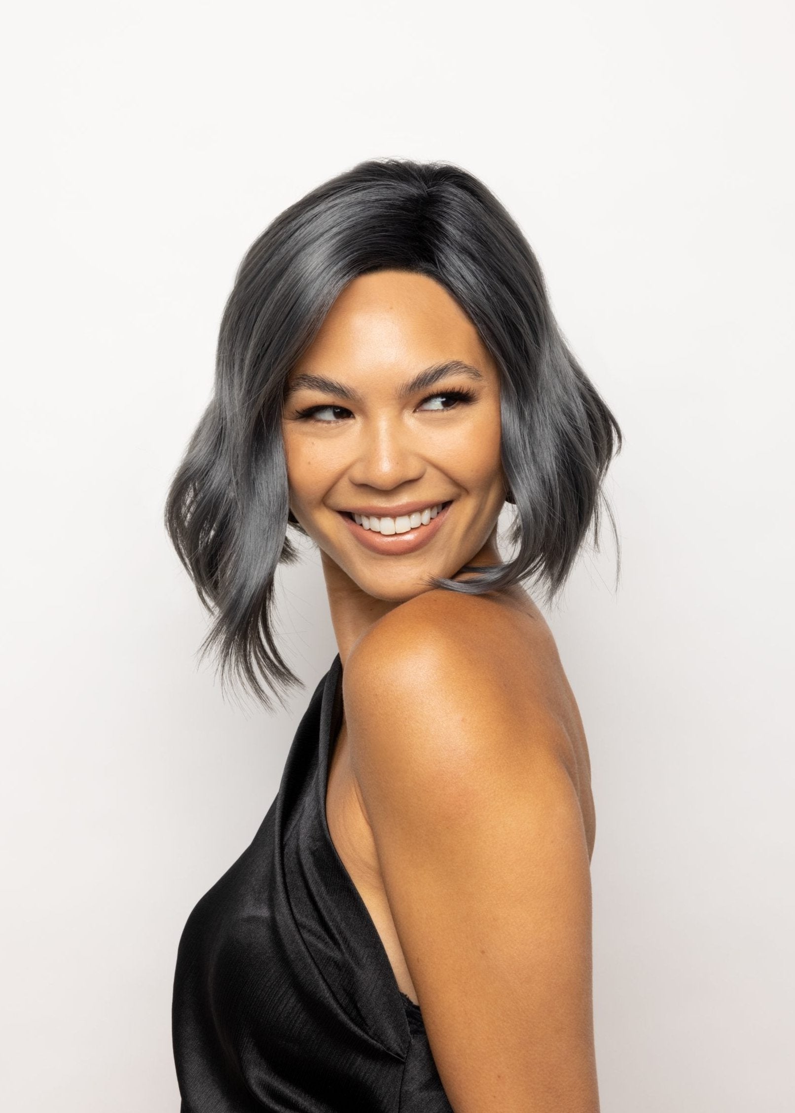 Chic Wavez from the Muse Collection is a short-length high heat wig. This Limited Edition ready to wear wig is a short wavy wig. This angled bob gives you just the right amount of edginess. Chic Wavez is a lace front/lace part with adjustable tabs in the back nape area to allow a more comfortable fit. The result is a comfortable fit with a natural look that is both fashionable and easy to wear.