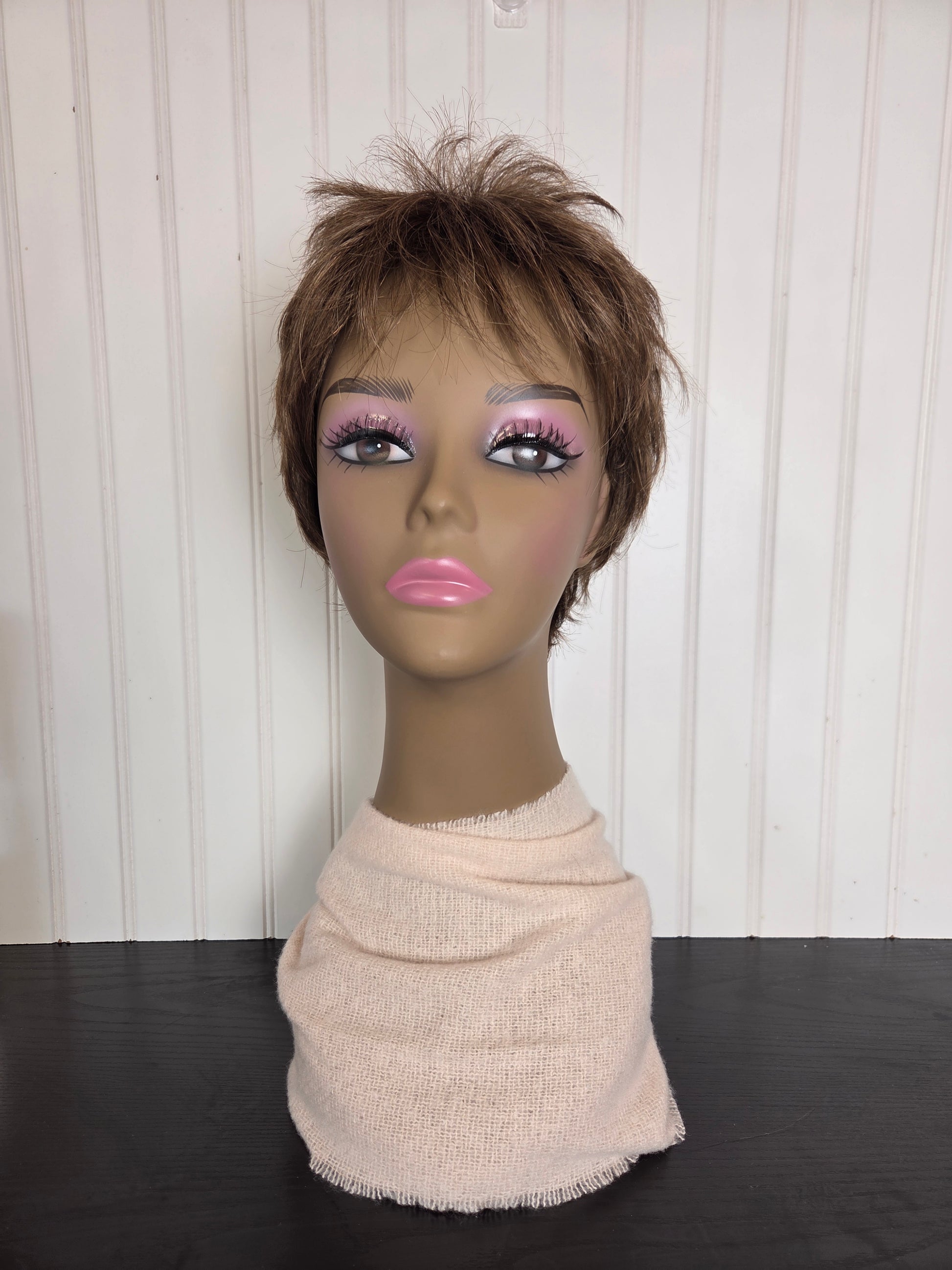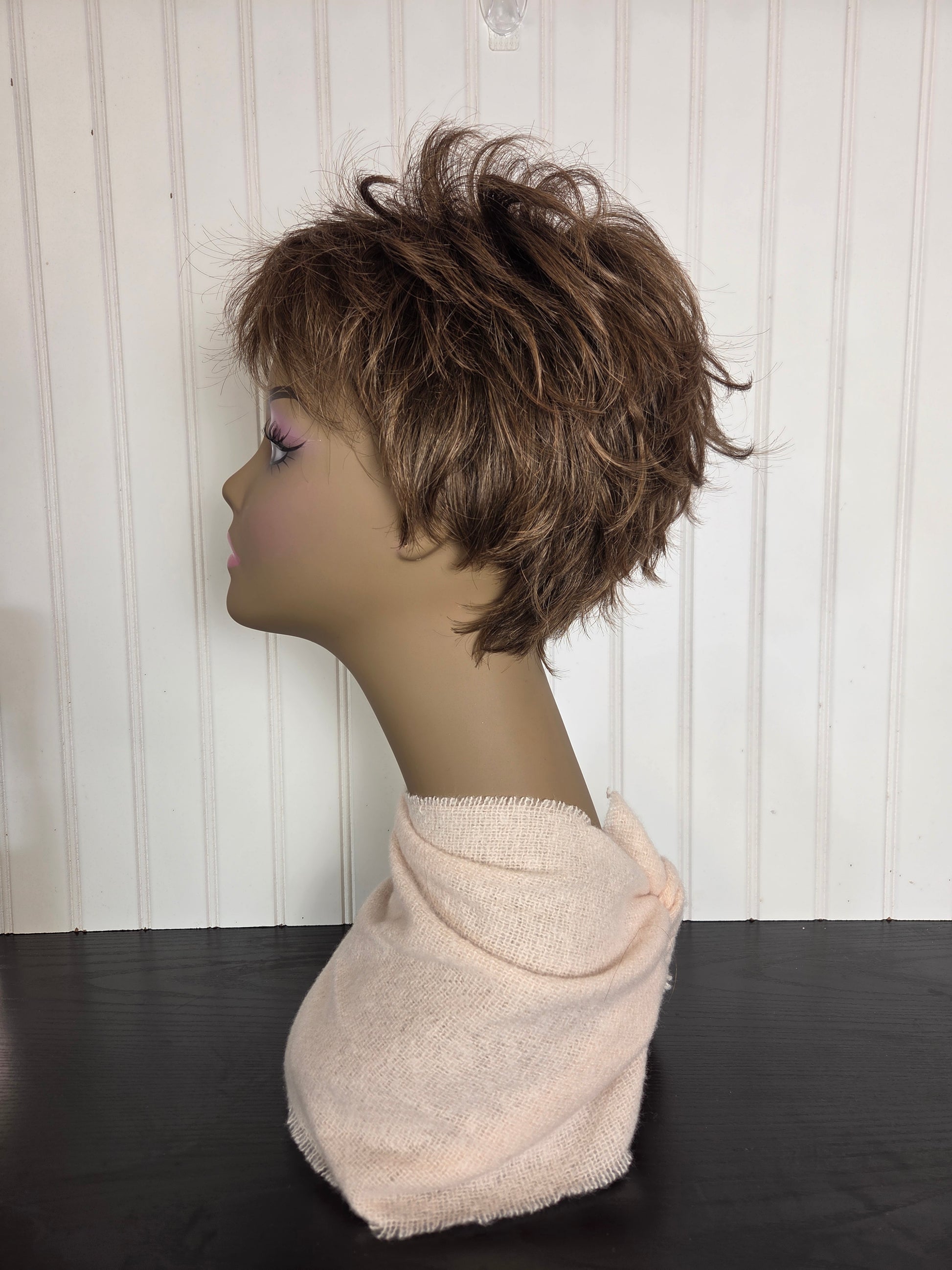 Piecey pixie wig with a lace front and short, texture-rich layers.