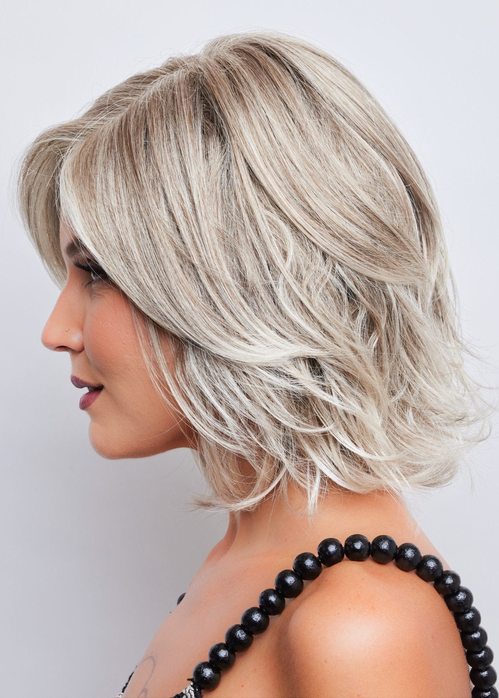 Kade from Noriko Collection is a medium length synthetic wig. This wavy ready-to-wear wig is a soft layered style. If you are looking to have unlimited styling options Kade provides that option.