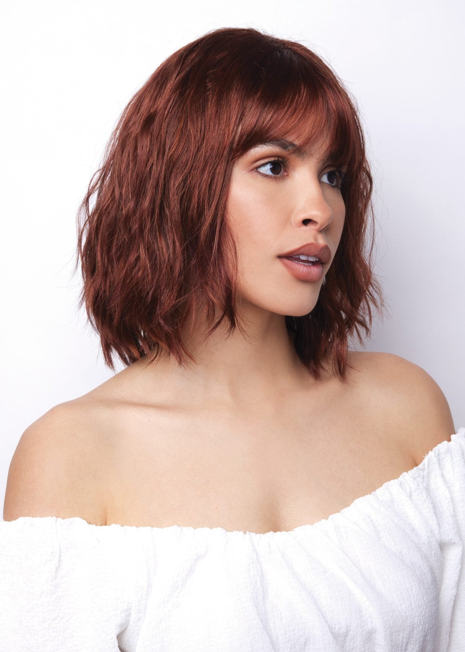 Liana from The Orchid Collection is a mid-length synthetic wig. This wavy ready-to-wear wig is a stunning bob with bangs and soft, shattered waves. Liana is a salon-inspired style with a sleek full fringe both bold and beautiful. This style is effortless and versatile. Liana is machine made with adjustable tabs in the back-nape area to allow a more comfortable fit. The result is a comfortable fit with a natural look that is both fashionable and easy to wear.