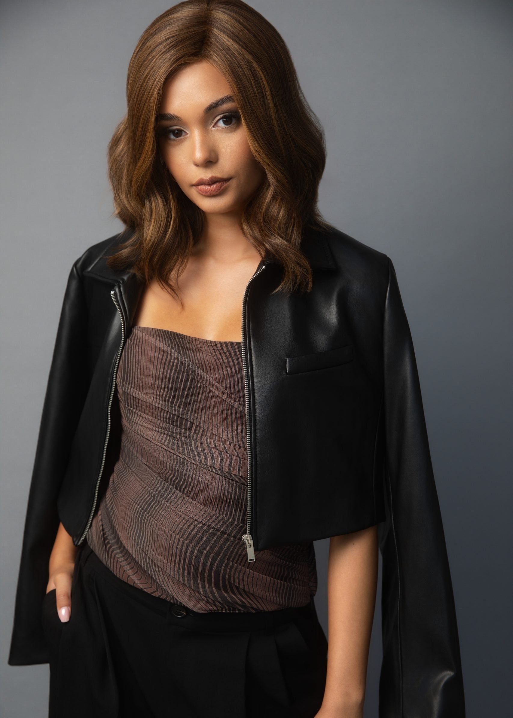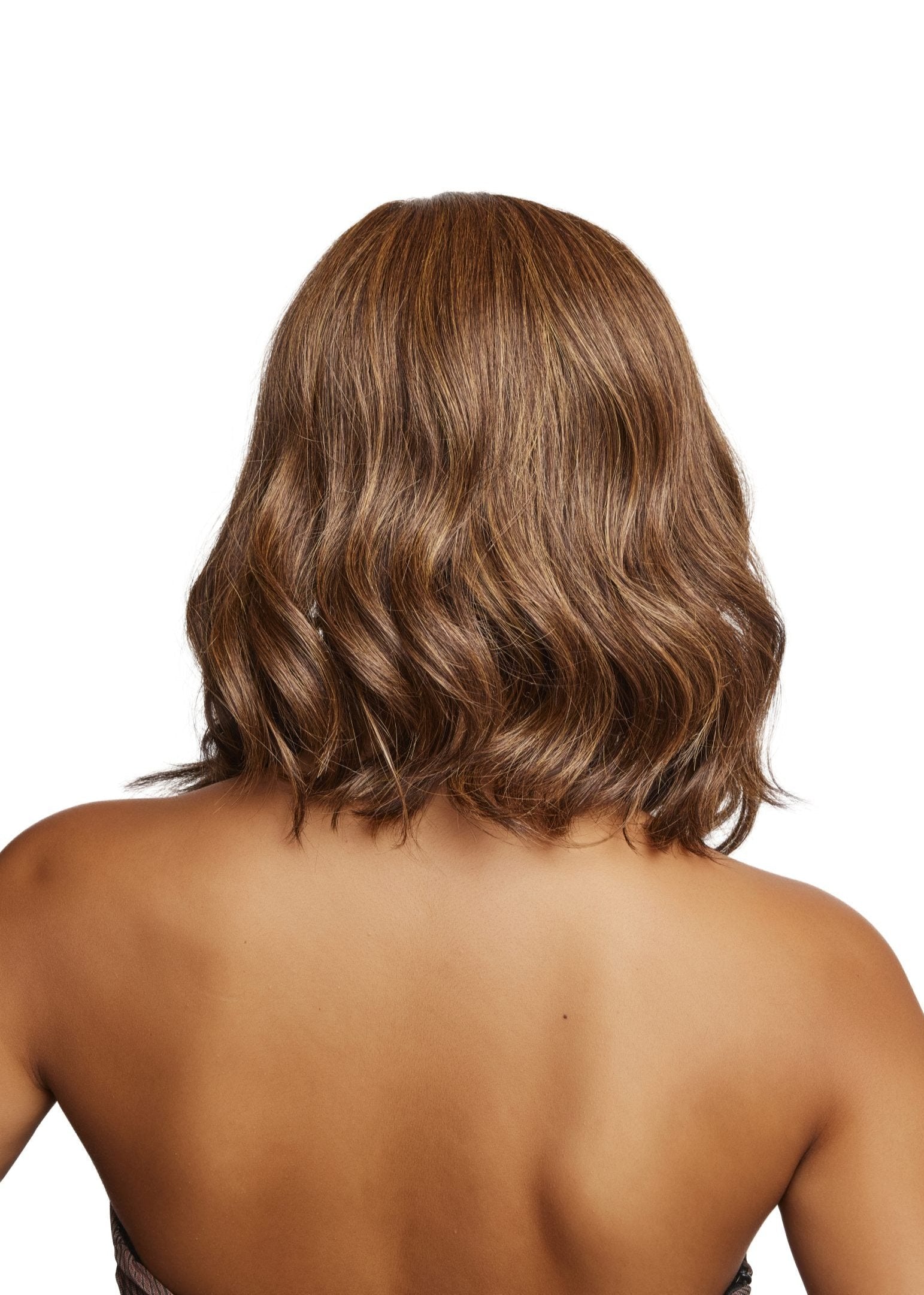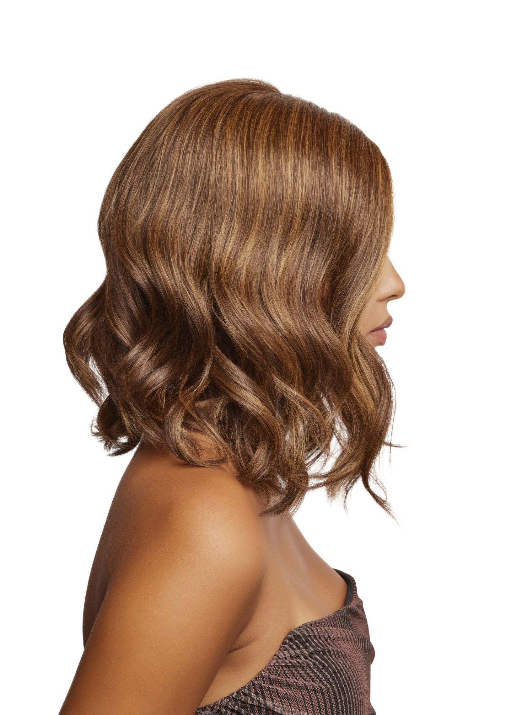 Panache Wavez from the Muse Collection is a mid-length heat friendly wig. This ready to wear wig is a stunning bob. This wavy texture adds a touch of elegance, while the beautiful side part frames your face creating a captivating look that’s sure to turn heads. Panache Wavez is a lace front/lace part with adjustable tabs in the back nape area to allow a more comfortable fit. The result is a comfortable fit with a natural look that is both fashionable and easy to wear.