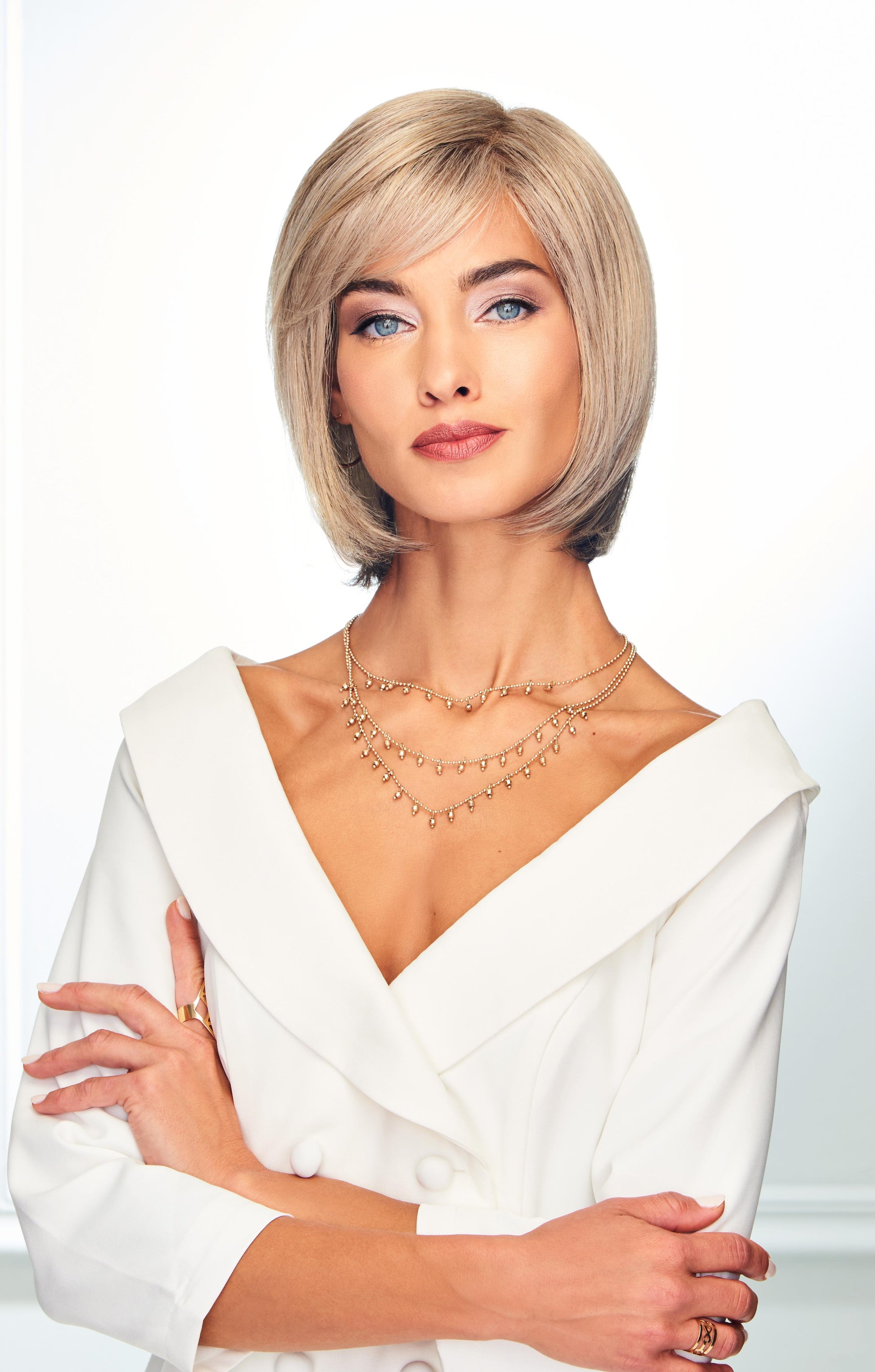 With a hand-knotted top for varied styling options and a sheer lace front for a life-like hairline, this precision crafted collar length page includes razor tapered bangs that can be styled full or off the face. Luxury Collection.
