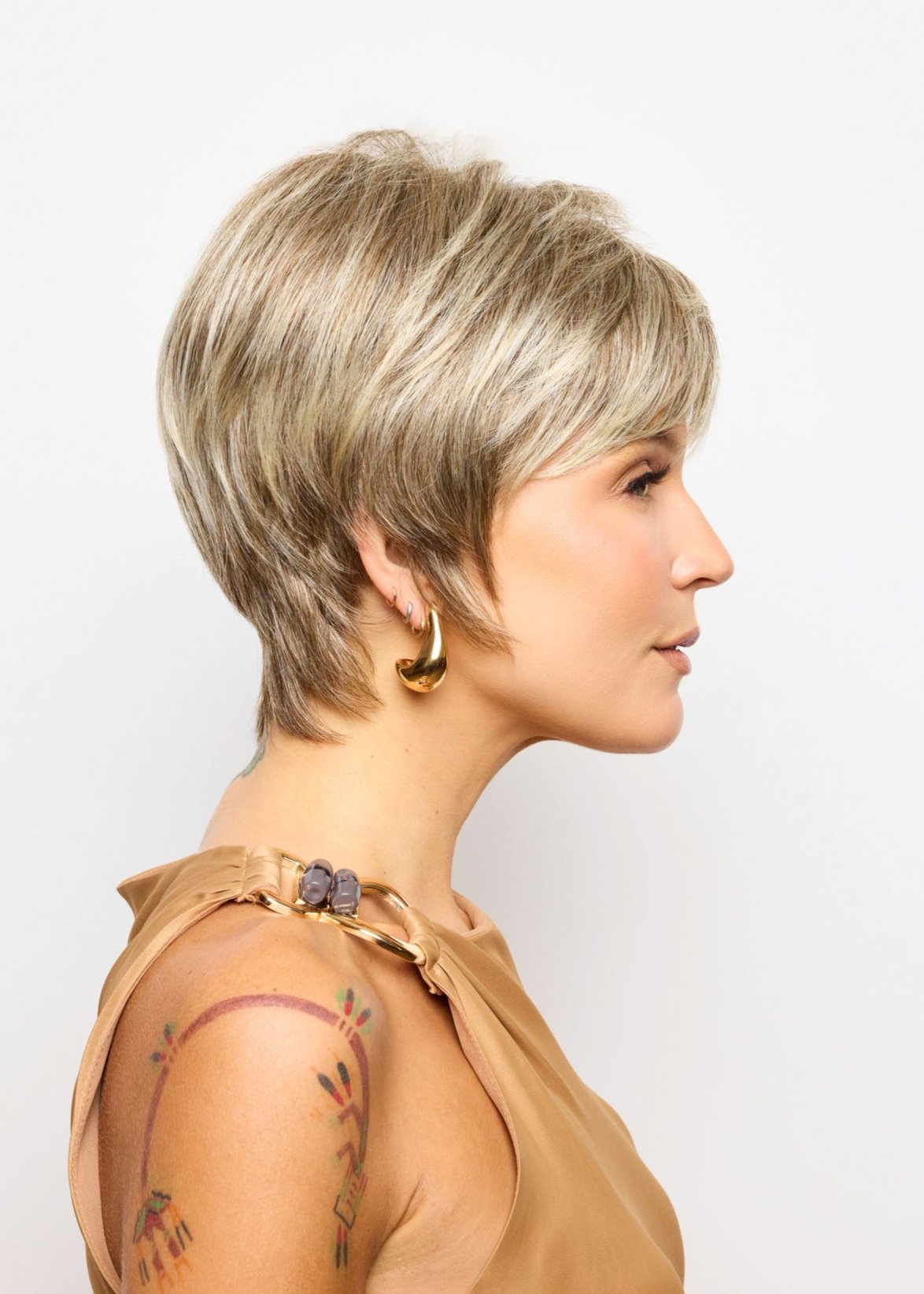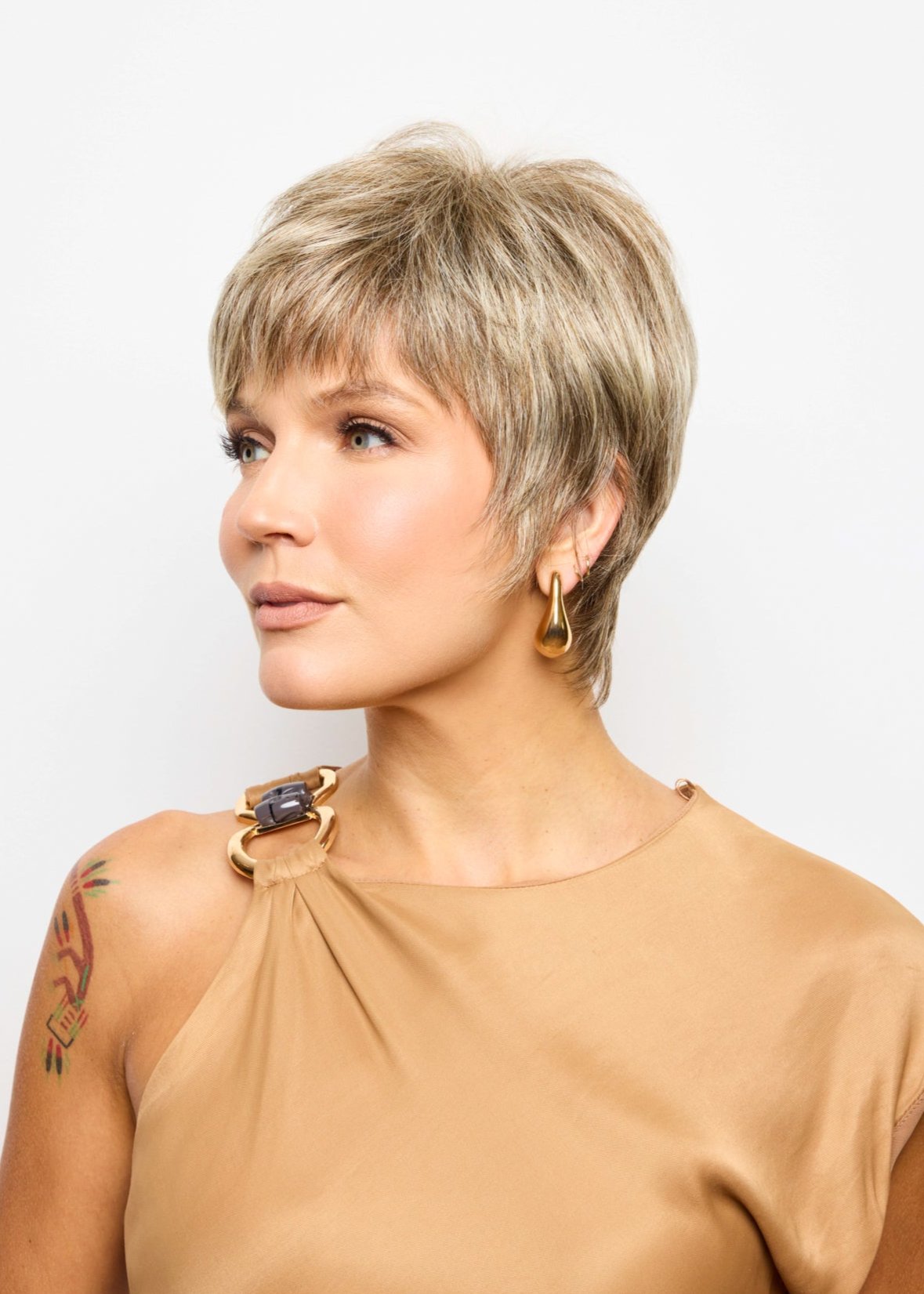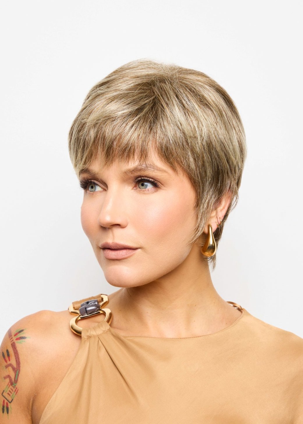 Sally from the Noriko Collection is a short-length synthetic wig. This straight ready-to-wear wig is a short-layer style with a soft fringe to frame the face while a tapered back hugs the nape. Sally is machine made with adjustable tabs in the back nape area to allow a more comfortable fit. The result is a comfortable fit with a natural look that is both fashionable and easy to wear.