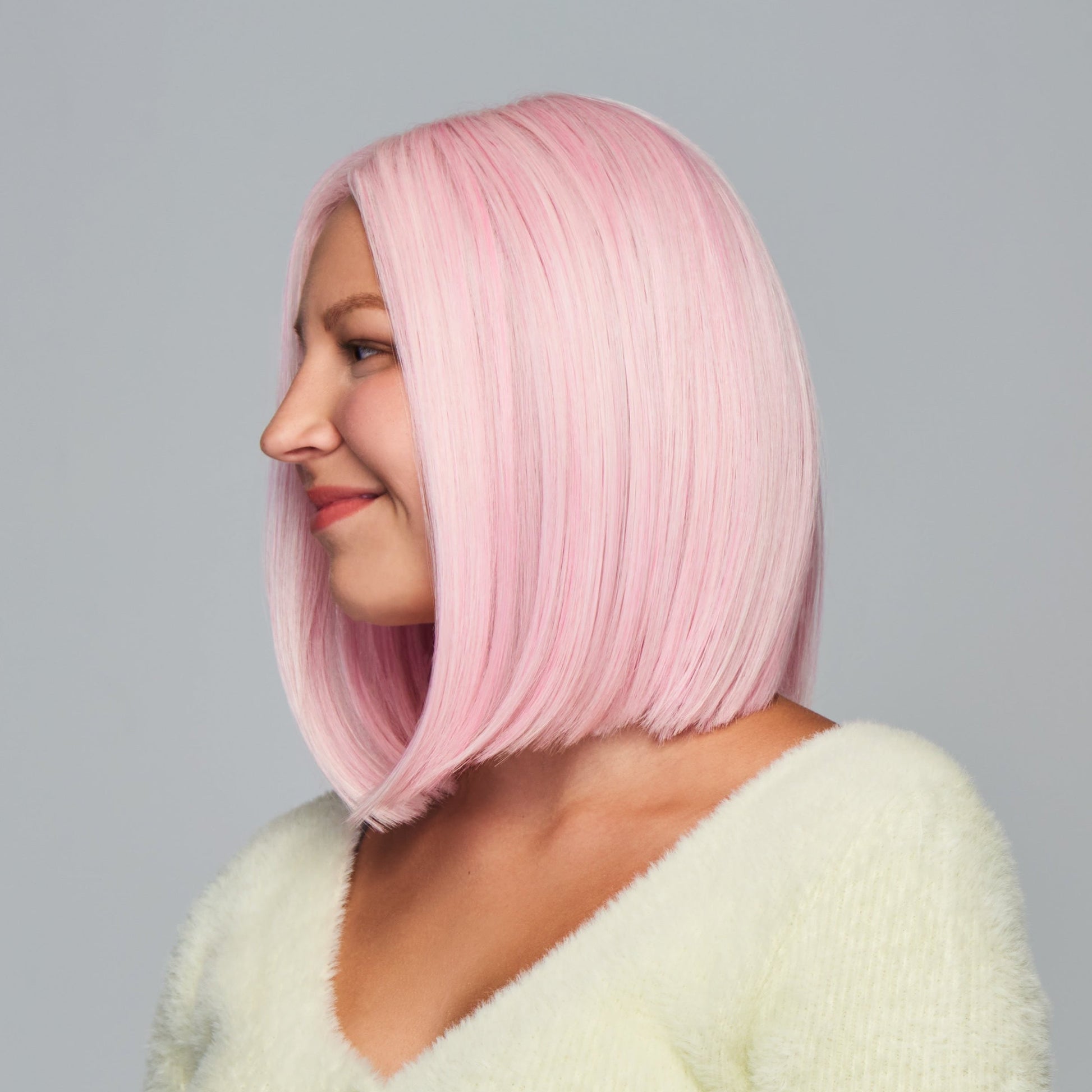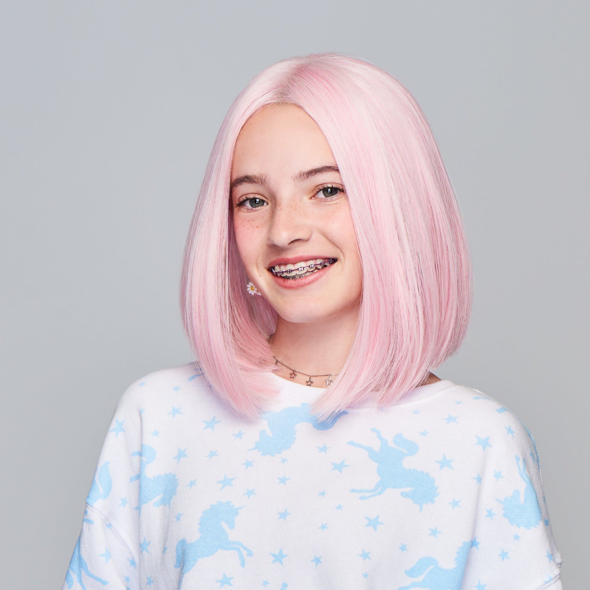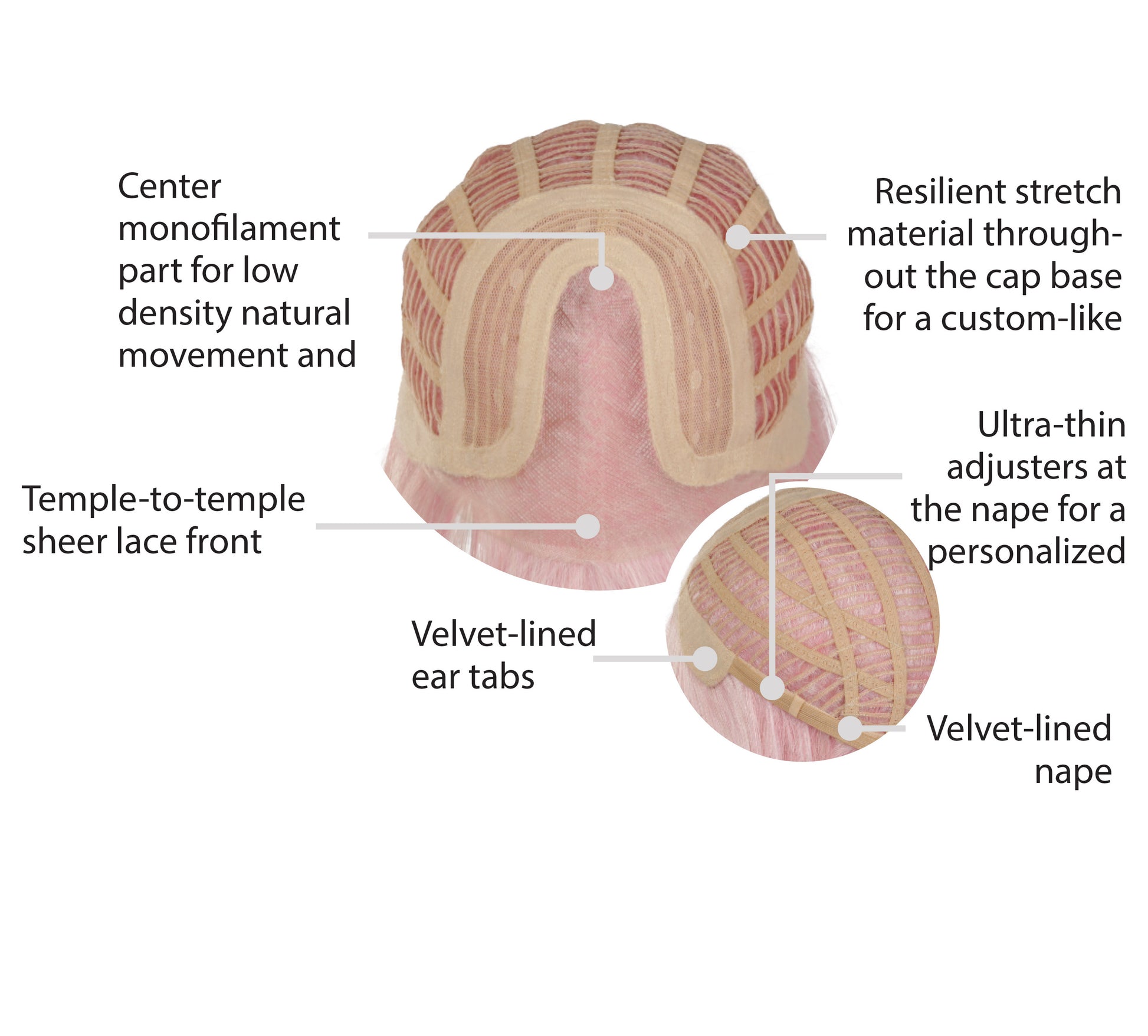 She’ll be tickled pink to find her favorite color is now her favorite hair! This modern bob style is as bouncy as bubblegum, smooth like strawberry frosting, and cotton candy sweet. It’s also comfortable, carefree, and most importantly… pink! Features include a lace front hairline, center monofilament part, ultra-petite cap and heat-friendly Tru2life fiber.