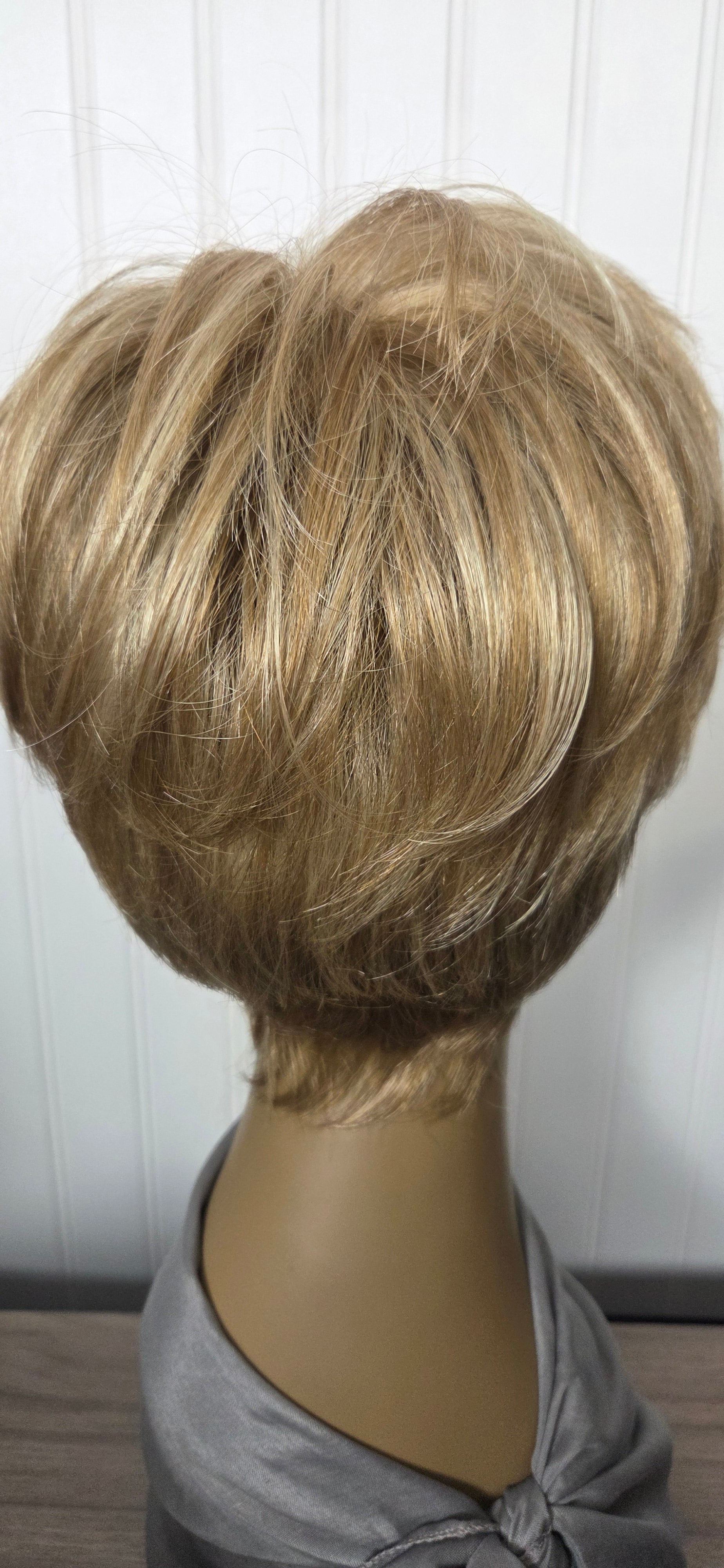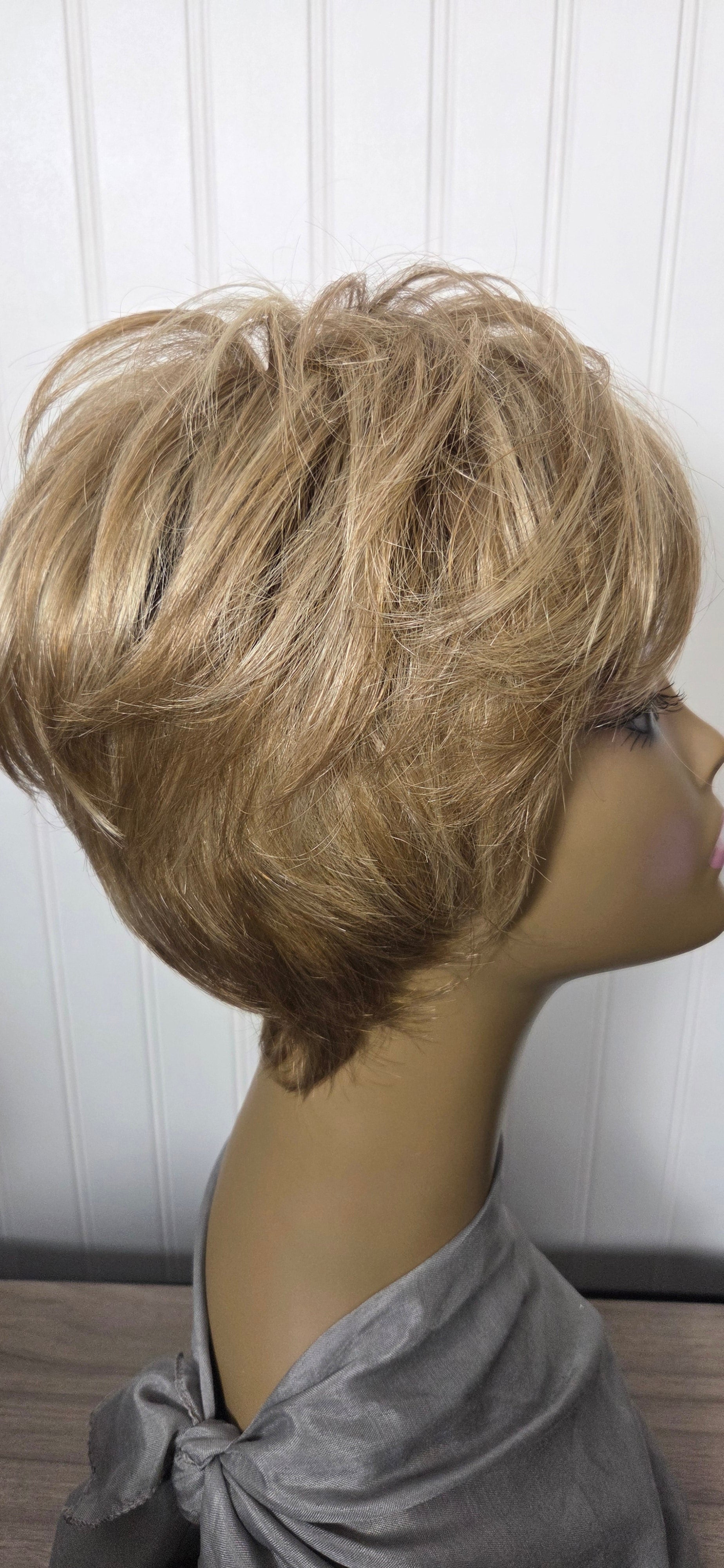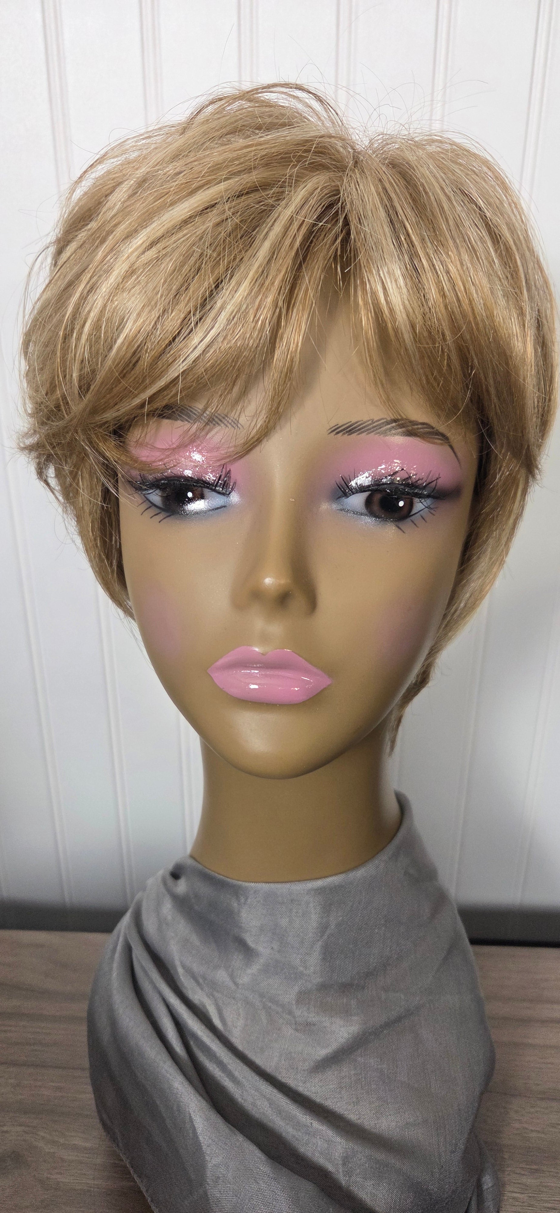 A chic boy cut with long angular face framing fringe bangs and a bit of volume in the crown. Amore Wendy wigs feature a double monofilament cap with a hand tied top construction and machine wefting along the sides and back. Wendy's monofilament base layer at the crown gives the illusion of skin, making it appear as though the hair is growing directly from your scalp.