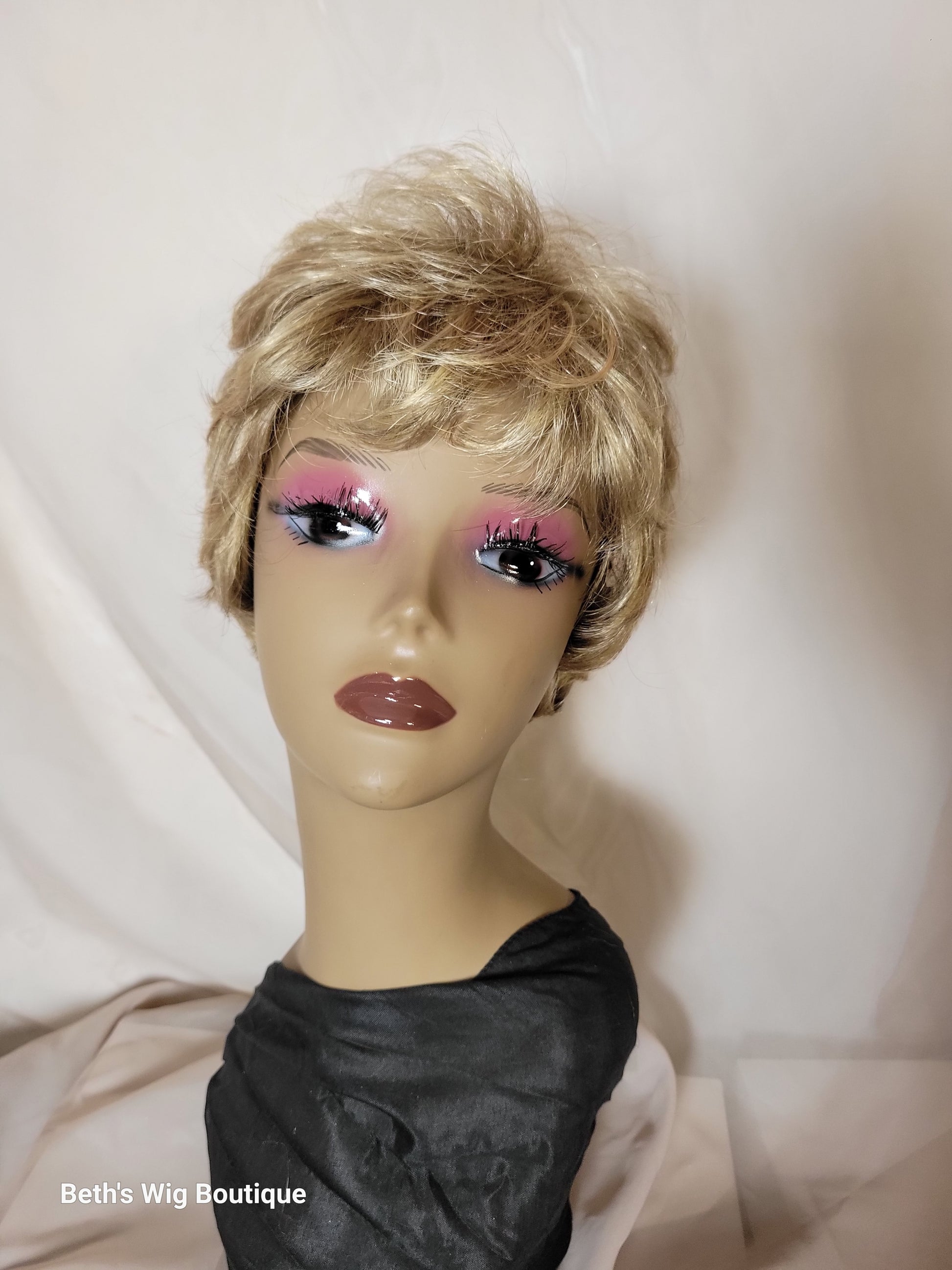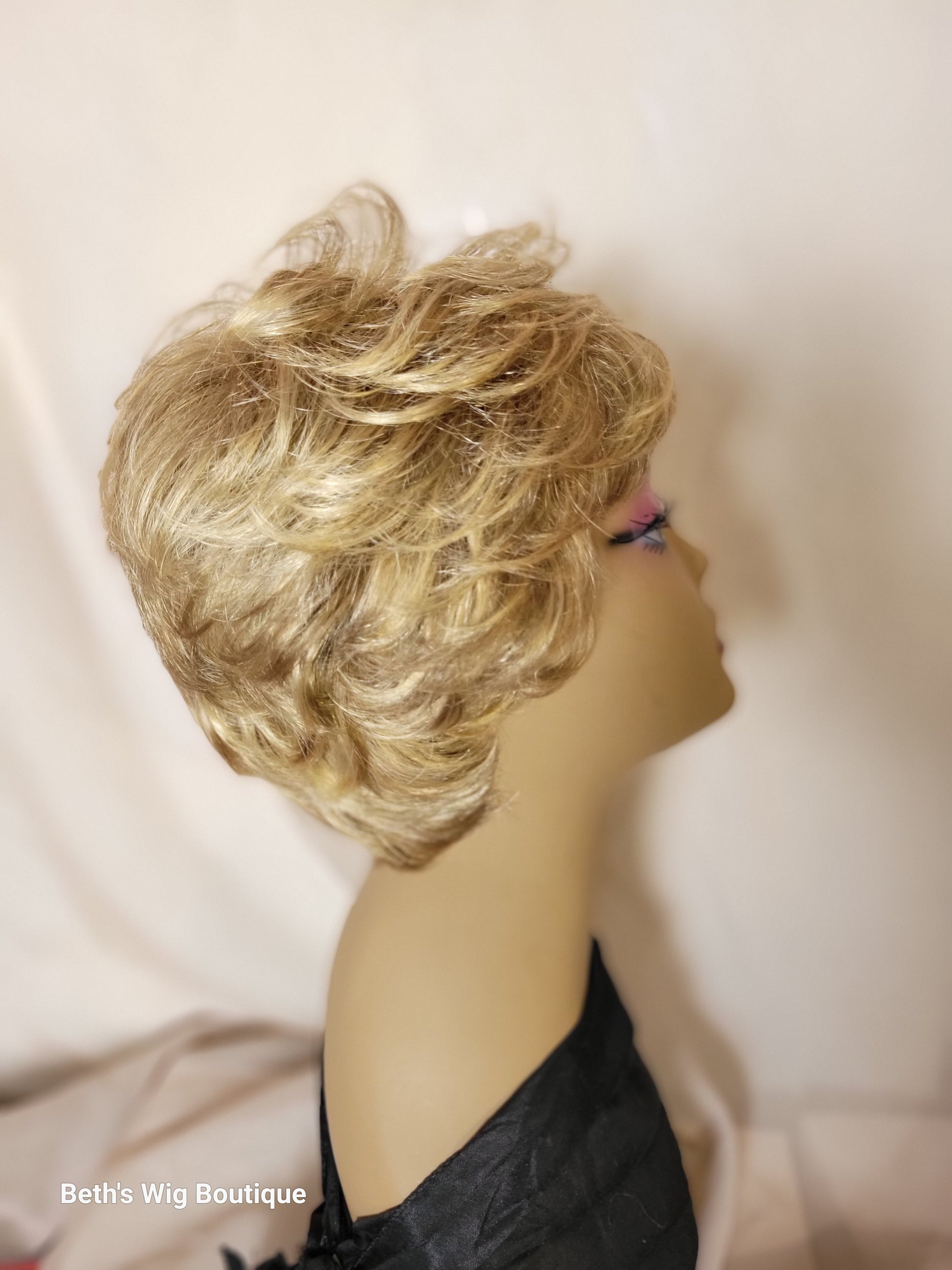 This wispy, airy wig provides gorgeous fullness that tapers in back for a modern edge. And the beauty of a short wavy wig is that it flatters virtually any face! The WhisperLite® fiber provides the ultimate in lightweight comfort - it won't even feel like you're wearing a wig! Hand-tied front and crown gives the appearance of natural growth, while the Permalift provides volume without adding weight. Open ear tabs make this wig ideal for eyeglass wearers. The extended neck of the wig allows more coverage of the nape of the neck so you can easily tuck away any stray hairs underneath.